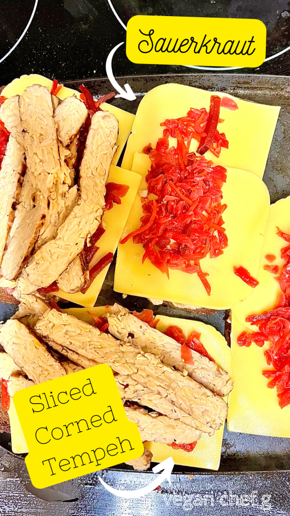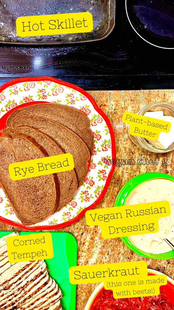 The step-by-step visual recipe for the Corned Tempeh is on my Instagram @veganchefg in the highlight reel! Follow my account while you’re there, if you don’t already.