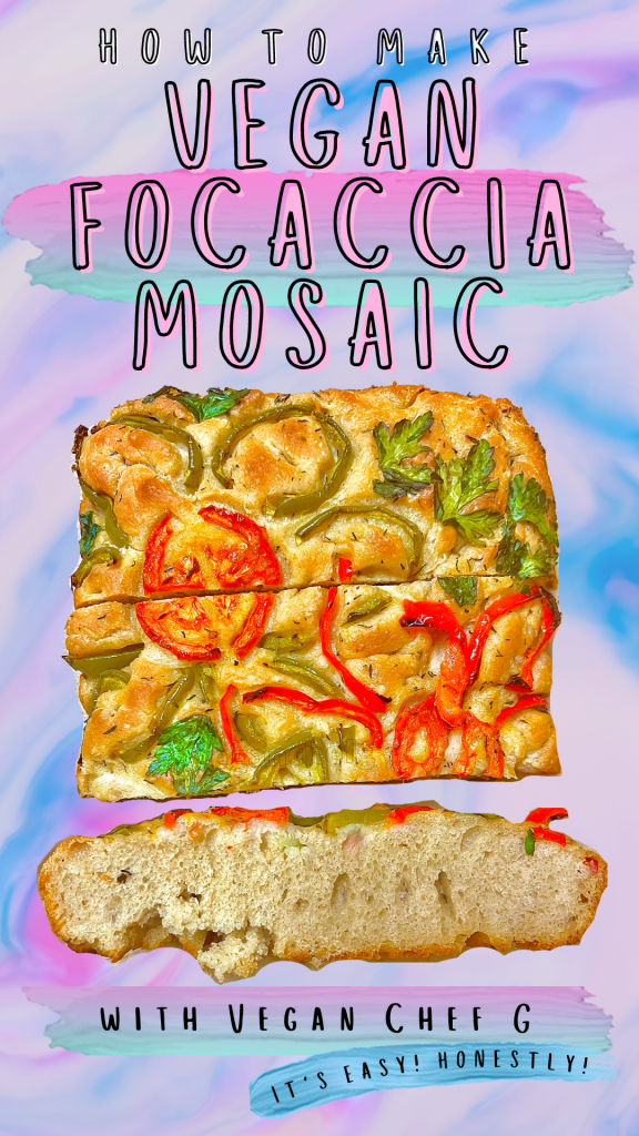 I have always felt that cooking is an art, similar to any other. I studied writing and poetics in college and graduate school, and through this have had the opportunity to explore a pretty wide variety of different art forms. More than anything else, I love the experience of self-expression and presence in the moment that comes when creating art– and making this focaccia mosaic inspires these same feelings, and similarly creates something beautiful. Plus, you get to eat it.